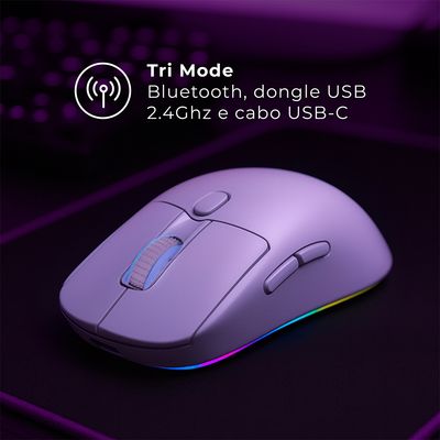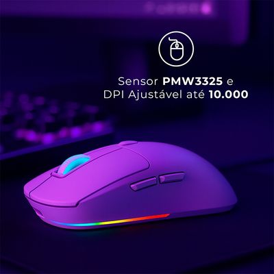 Equipado com o sensor de alto desempenho PMW3325, oferece rastreamento preciso com velocidade de até 100 IPS e aceleração de 20G, garantindo agilidade e resposta instantânea nos seus movimentos.