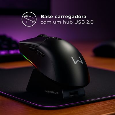 Alcance máxima precisão e liberdade nos seus jogos com o Mouse Gamer Sem Fio Warrior, desenvolvido para oferecer alto desempenho, conforto e durabilidade. Com apenas 83G, é ultraleve, ideal para longas sessões de uso sem fadiga.